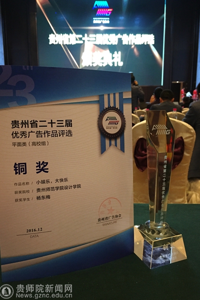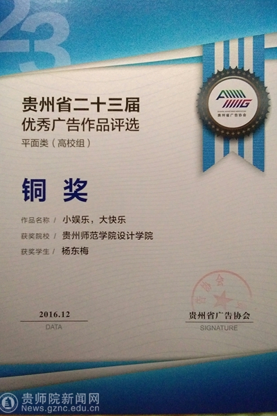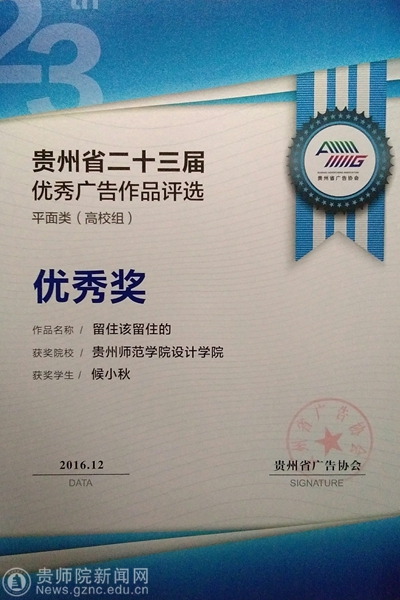 贵州省优秀广告作品评选每年举办一届,至今已过去23届。大赛聚焦贵州广告行业,参赛单位的既有媒体、企业、高校、涉及范围广。从本次大赛获奖的整体情况看,我校师生能在设计行业中进行竞争,并获得了铜奖和优秀奖的好成绩,实属不易。