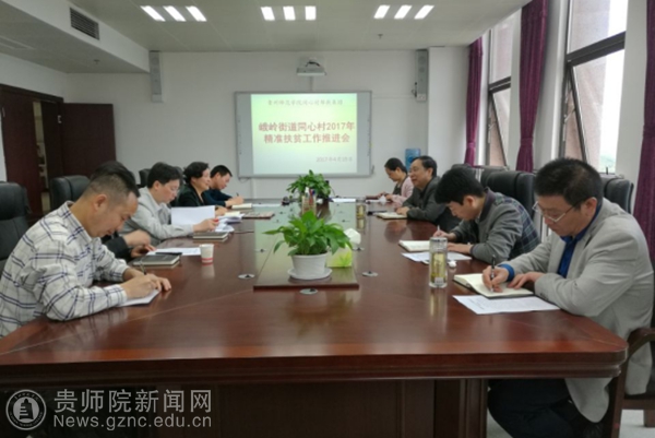本网讯 4月19日上午,贵州师范学院印江县同心村精准扶贫帮扶团在信息楼907会议室召开精准扶贫工作推进会,参加会议的有副校长令狐荣锋和校党政办副主任赵刚、后勤处处长唐前进、审计处处长姜建国、教师工作处处长谢笠、校工会主席许丽君、物理与电子科学学院基层党委书记王平瑞、艺术学院基层党委副书记朱晨刚7个单位主要负责人,驻同心村第一书记熊德永,帮扶团联络员向坤同志参加了会议。王平瑞主持会议。