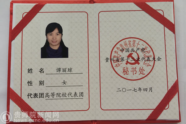 本网讯 中国共产党贵州省第十二次代表大会于2017年4月16日至4月20日在贵阳召开。我校数学与计算机科学学院谭丽琼老师作为省第十二次党代会代表参加此次会议。
