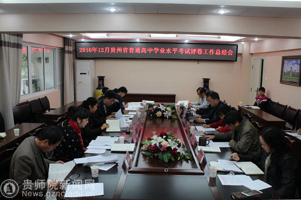 本网讯 4月21日上午, 2016年12月贵州省普通高中学业水平考试评卷工作总结会在继续教育学院第一会议室召开。省会考办主任高琦、贵州师范学院副校长郭文,以及我校相关学院负责人参加会议。会议由继续教育学院院长赵德肃主持。