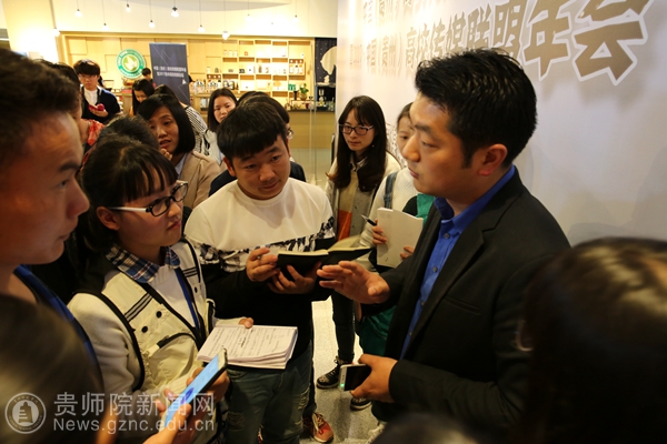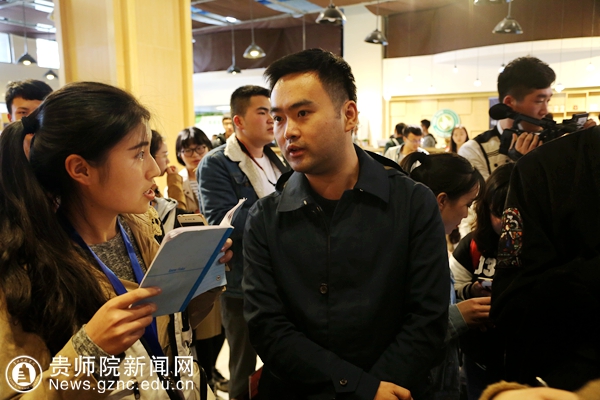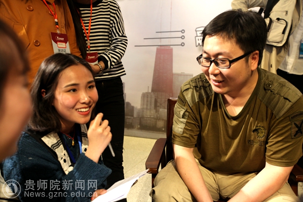 本网讯 4月22日,2017年贵州校媒年会上午在我校开幕,本次年会邀请到了《每日人物》执行主编、原《中国青年报》冰点周刊执行主编周欣宇;中央电视台记者尹平;新华社贵州分社摄影部主任欧东衢;《南方周末》社会新闻部资深记者王瑞锋。会议期间,四位媒介大咖接受我校大学生记者团的采访,讲述自己的心得。