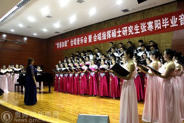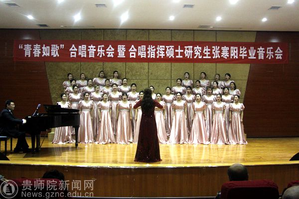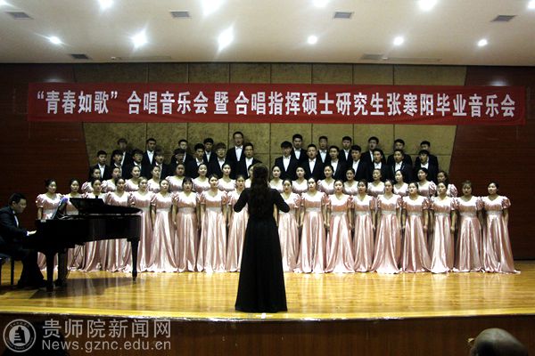 贵州师范学院合唱团以一首《保卫黄河》开场,铿锵有力的节奏,形象的刻画了保卫黄河、保卫全中国而战斗的壮丽场景。之后又演唱了《金黄色的云朵过夜了》,《青春舞曲》等著名歌曲。贵州大学音乐学院合唱团作为表演嘉宾演唱了《牧羊少女》、《雪花的快乐》、《家乡》《高原我的家》三首曲目,并在学术上进行了深入的交流和学习。