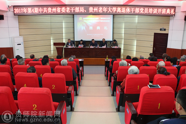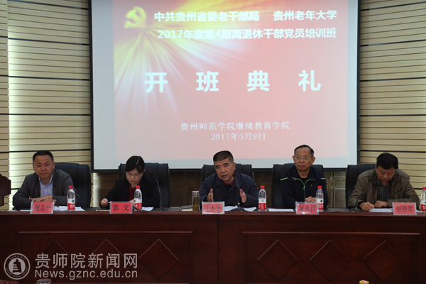 本网讯 5月9日至11日,“中共贵州省委老干部局、贵州老年大学2017年第4期离退休干部党员培训”在继续教育学院举办。开班典礼上,贵州省委老干部局副局长、贵州老年大学党委书记、校长王小乐;贵州省林业厅党组成员、机关党委书记黄永昌;贵州师范学院副校长郭文;贵州老年大学老干部党建处处长颜志平等出席了开班典礼。开班典礼由继续教育学院院长赵德肃主持。