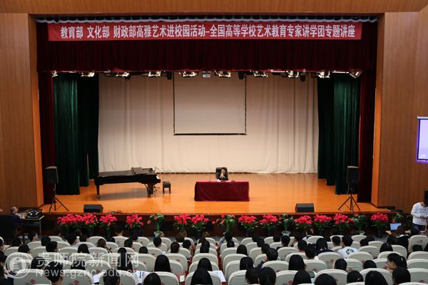 本网讯 根据教育部办公厅,文化部办公厅,财政部办公厅《关于开展2017年高雅艺术进校园活动的通知》和教育部体卫艺司《关于组织2017年艺术教育专家讲学团赴中西部地区高校讲学的通知》精神。5月9日下午,艺术教育专家讲学团杨阳教授在我校逸夫楼演播厅开展了“高雅艺术进校园系列活动——艺术教育专家赴西部高校讲学活动”。我校校长李存雄亲临此次讲座,本次讲座由校团委副书记傅小芳主持。