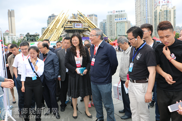 当何力一行见到我校展出的“智能擦鞋机”和“智能体重秤”时,领导们都不约而同地被这些有趣的创意作品逗乐了,何力关切地问道:“这些优秀的科技作品,有没有成立创业团队使其商业化?”马敏耀答道:“贵州师范学院高度重视创新型人才培养,这些科技作品全部都是学生在科普基地教师们的指导下开发出来的,很有创意。下一步我们准备精挑部分作品,完善其功能并精心设计外观后,投入市场。”听后,何力询问道“这些作品有没有参加本次的商业路演”?并向随行的工作人员询问本次商业路演的安排情况。