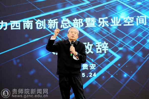 石培新在发言中表示,人才是我省“守底线、走新路、奔小康”的重要支撑。作为一所年轻的普通高校,贵州师范学院坚决贯彻落实国家、省委省政府关于实施创新驱动发展战略的重大举措,坚持把创新创业教育作为人才培养的重要抓手。汇聚合力、加快发展,从无到有、由弱变强,营造了创新创业教育良好氛围。希望让一大批有理想、有抱负、有追求的贵州大学生朋友们,在贵安新区这块肥沃的创新创业土地上,合力而为,砥砺奋进,阔步前行。