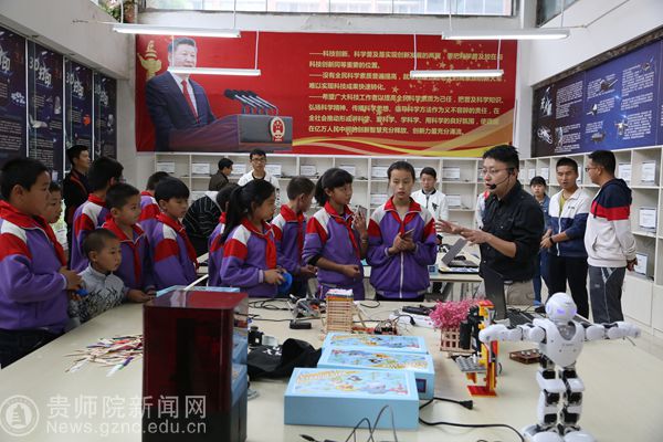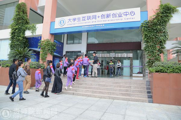 本网讯 5月24日下午,一群身着紫色校服、戴着红领巾的小学生现身在满眼绿意的贵州师范学院,这群来自南明区振华小学的23名小朋友,在校长刘枣利的带领及父母的陪同下,到我校数计学院大学生互联网+创新创业中心参观学习。本次活动由贵州都市报与我校共同举办。