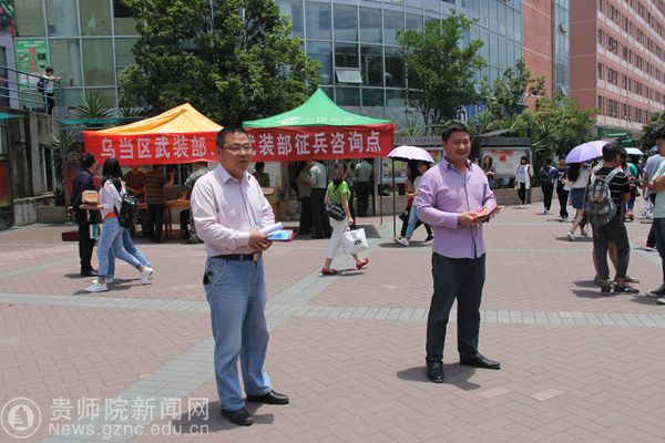 为了充分调动全校学生参军的积极性,激发大学生青年参军入伍的激情,也为了让同学们了解了大学生入伍的各项相关政策,5月26日,学校人民武装部邀请乌当区人民武装部在感恩食府前共同举办了2017年大学生征兵的宣传、咨询活动。学校武装部、乌当区武装部的工作人员向前来咨询的学生详细介绍了征兵的流程,全面解读2017年征兵条件和相关政策,并对同学们提出的问题进行了耐心的解答,同时发放了征兵宣传册2000多份。