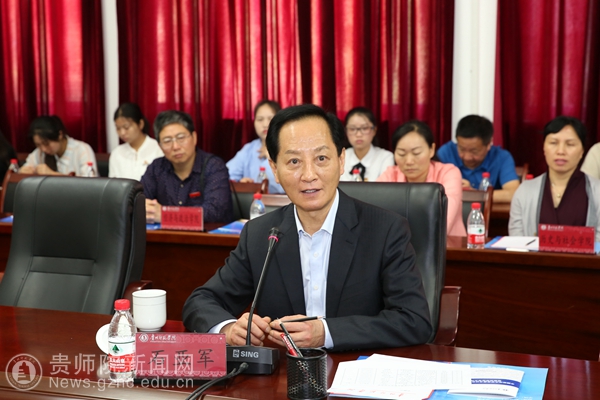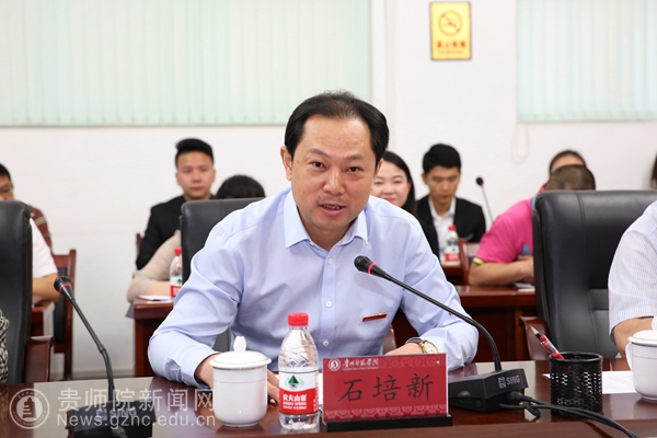 校党委书记石培新在欢迎辞中首先代表学校欢迎优秀校友回家,并衷心感谢石亚军书记在我校迎评改制期间给予我校的大力帮助。石培新追述说,2009年5月30日,是贵州教育学院30年院庆暨贵州师范学院挂牌成立的喜庆日子,亚军书记亲临现场,并且作为校友代表发表了热情洋溢的讲话。石培新特别指出,今年5月3日,习近平总书记到中国政法大学考察,看到新闻,我们师院人为亚军书记感到骄傲和自豪。石培新恳请石亚军书记向我校师生传达习近平总书记在中国政法大学重要讲话精神,并对我校今后在“双一流”建设中如何发展进行指导。