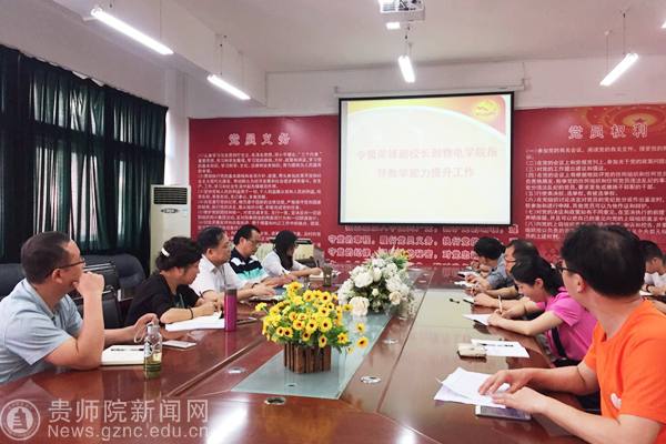 本网讯 6月7日,令狐荣锋副校长来到物电学院指导教学能力提升工作,我院党政班子王平瑞、周筑文、何毅、陈德良,以及教研室主任、科级干部和全体辅导员参加。首先,令狐荣锋充分肯定我院几年来在教学、科研等方面取得的成绩。作为师范专业,教师资格证是学生走向工作岗位必要的证件,学校领导非常重视学生的就业能力的培养,要求学院采取相应措施提高学生综合素质、教育知识与能力、物理学科与教学等方面的能力。