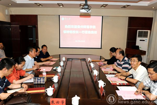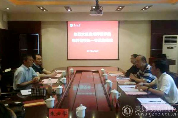 贵州大学常务副校长王红蕾、副校长金道超及党政办公室、对外交流合作处、研究生院、计算机科学与技术学院、材料与冶金学院、化学与化工学院负责人等向郁钟铭一行介绍了贵州大学学科建设与研究生教育情况。王红蕾指出,贵州师范学院作为新建本科院校,贵州大学定会尽力帮扶,为加强两校合作与交流,要尽快签署两校合作框架协议;双方还就联合培养研究生事宜进行了深入的座谈,并就诸多细节问题达成了合作意向,以期尽早实施。