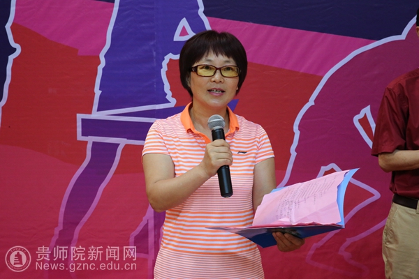 本网讯 6月10日上午,2017年贵州省直学校(附院)教职工兵乓球比赛在我校体育馆举行了开幕式。贵州省教育厅党组成员、省委教育工委副书记赵廷昌,原贵州师范大学校长、贵州省政协科教文卫专委会副主任伍鹏程,贵州师范大学副校长乙引,我校党委书记石培新,党委副书记令狐彩桃以及其他院校相关领导人出席活动。来自十八支院校参赛队伍以及裁判员参与了本次开幕式。令狐彩桃主持开幕式。