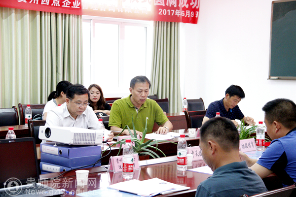 本网讯 6月9日下午,体育学院召开休闲体育专业行业专家交流会及校企合作签约仪式。副校长令狐荣锋、贵州省山地户外运动管理中心副主任甘小川、中天健身等5家知名体育公司的代表、体育学院领导班子成员及休闲体育专业教师参加了此次会议。会议由体育学院副院长李延武主持。