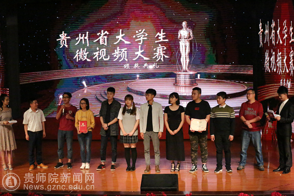 19时,影视作品展的指导老师和学生们身着盛装走在红毯上,别样的晚会入场式为本次影视节增添了浓郁的文艺色彩。颁奖晚会上,从50部毕业设计作品中,产生了13部最佳奖项作品。贵州省首届“大学生微视频大赛”共设一等奖2名、二等奖4名、三等奖6名,其中我校作品《影》斩获一等奖。我校教师洪桂云、沈成菊等人获得贵州省级优秀指导教师荣誉称号。陈锐秘书长、肖江虹导演、曾珍副主编、文学院韦丹书记、娄立原老师等担任颁奖嘉宾。晚会上,韦丹对获奖的同学表示祝贺,向肖江虹老师对文学院学生的培养和帮助表示感谢。