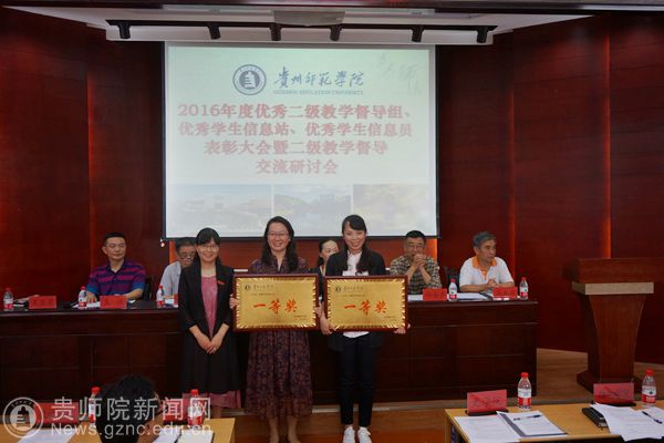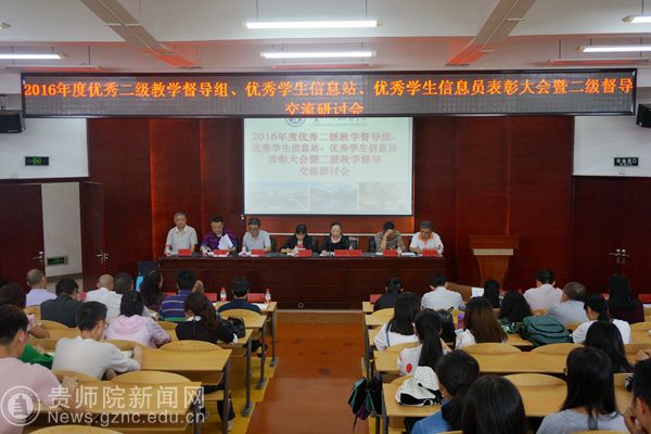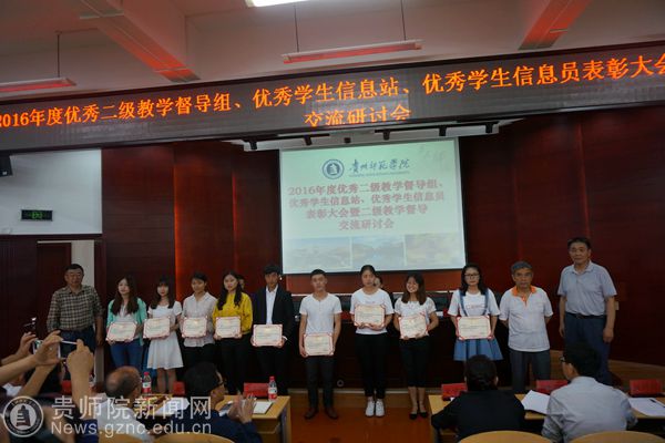 本网讯 6月22日下午,我校在知行苑宁静楼151多媒体教室召开2016年度优秀二级教学督导组、优秀学生信息站、优秀学生信息员表彰大会暨二级教学督导交流研讨会。副校长郭文,校级教学督导,各院(部、中心)二级教学督导组代表学生信息员代表,教学质量监测与评估办公室相关人员参加了会议。会议由质评办主任邓琴主持。