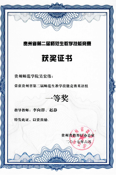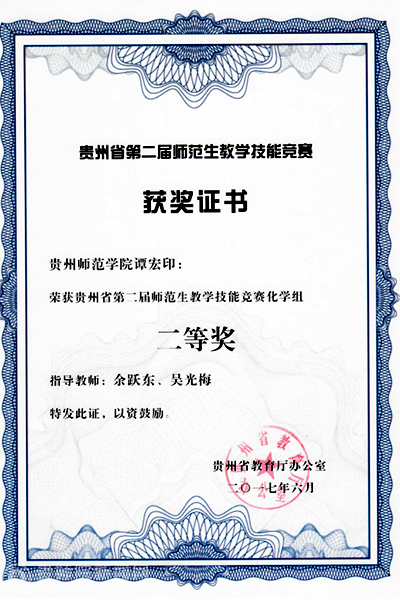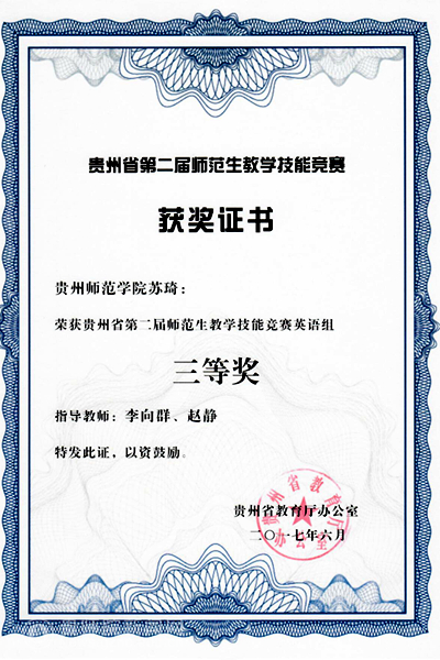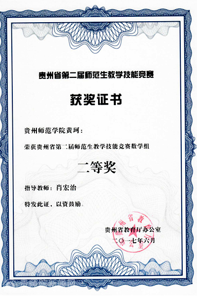 本网讯 近日,省教育厅公布了贵州省第二届师范生教学技能竞赛结果,我校学生喜获佳绩。该项比赛于2016年11月,由贵州省教育厅主办、贵州师范大学花溪校区举办,来自全省15所高校的学生分别在语文、英语、物理、数学、化学、生物6个学科同台竞技。