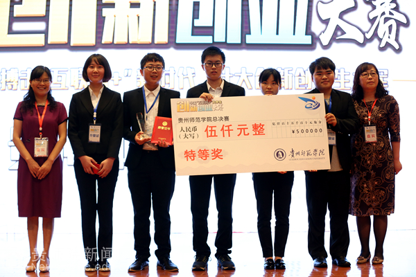 比赛采取评委现场打分、现场亮分的形式当场确定比赛成绩,评委针对创新性、团队情况、商业性、带动就业情况等方面进行提问和打分,现场计分并现场决出特等奖1名、一等奖1名、二等奖2名、三等奖3名、优秀奖3名和优秀组织奖3名,并现场颁发奖状、奖杯及奖金。其中“医修阁”(贵州师范学院-贵州大学联队)获得本次大赛特等奖,“Museum+”获得本次大赛一等奖,“基于物联网的高校实验室智能化管理设计”等2个项目获得本次大赛二等奖,“益汇青春”等3个项目获得本次大赛三等奖。数学与计算机科学学院、外国语学院和物理与电子科学学院获得本次大赛优秀组织奖。