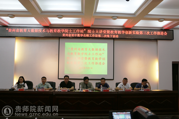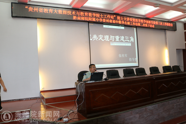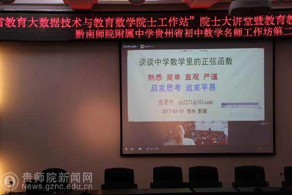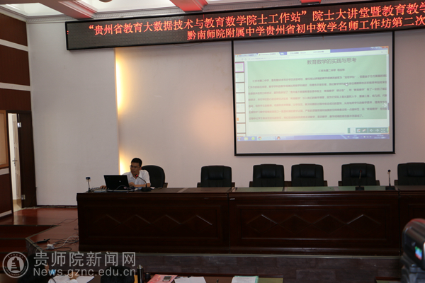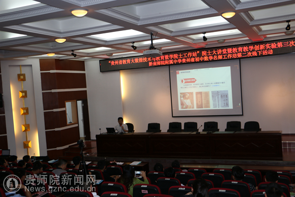本网讯 7月1日,由贵州省教育大数据技术与教育数学院士工作站主办,黔南州教育局、贵州省黔南民族师范学院附属中学、贵州省名师发展中心(黔南分中心)、黔南民族师范学院研究生处、黔南民族师范学院研究生处、黔南民族师范学院教育科学学院、贵州省初中数学张瑛名师工作室承办的“‘贵州省教育大数据技术与教育数学院士工作站’院士大讲堂暨教育数学创新实验第三次工作推进会”在贵州省都匀市黔南民族师范学院举行。本次活动基于“教育数学”的理念,围绕以下主题进行研讨:(1)教育数学创新教学实验研究;(2)教育数学教学改革成果交流;(3)教育大数据技术应用研讨。中科院院士张景中(远程)、贵州省教育大数据技术与教育数学院士工作站项目组成员、成都景中教育软件有限公司领导、贵阳十三中、贵阳二十四中、观山湖区外国语实验中学、凯里二中、凯里五中、凯里十中、凯里一小、黔南师院附属中学、仁怀市二中、凯里七中、兴义一中等教育数学创新实验学校的教师近200名代表参加了此次活动。