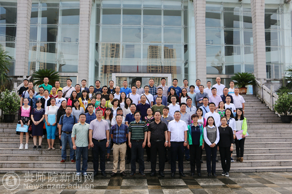 活动的开幕式于7月1日上午在黔南民族师范学院7101学术报告厅举行,黔南民族师范学院副校长韦煜、贵州省教育大数据技术与教育数学院士工作站负责人、我校数计学院院长左羽、黔南民族师范学院附中校长李兴祥、成都景中教育软件有限公司副总经理等领导出席,贵州省初中数学名师工作室负责人张瑛主持开幕式。贵州省教育大数据技术与教育数学院士工作站负责人、我校数计学院院长左羽教授致欢迎辞,代表院士工作站对参加本次会议的各位代表表示热烈的欢迎,对承办此次活动的单位表示感谢,并介绍了贵州师范学院的发展现状和院士工作站的目标及预期成果,预祝本次活动取得圆满成功。开幕式结束后,与会代表合影留念。