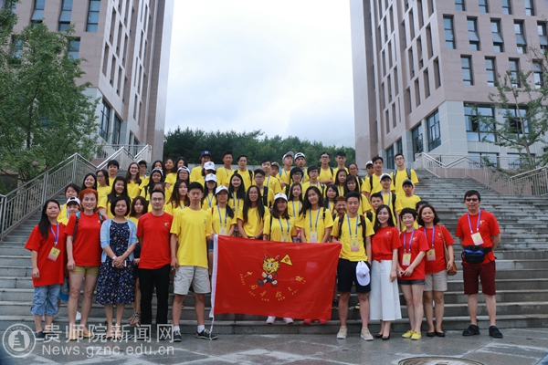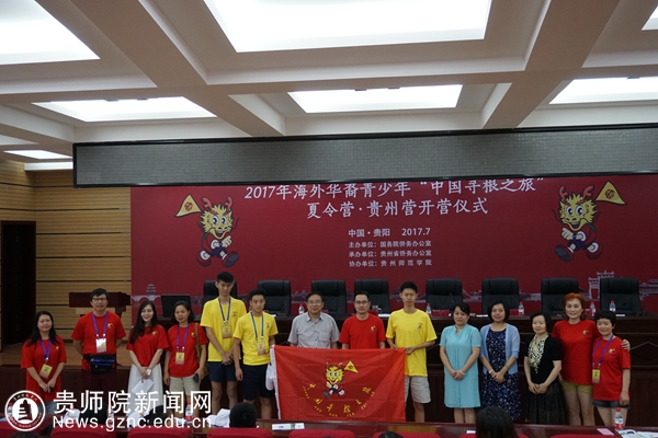 最后,令狐荣锋、曹军军共同向营员授夏令营营旗,并与在场所有师生共同观赏了贵州旅游文化宣传片以及贵州师范学院英文宣传片,开营仪式圆满结束。