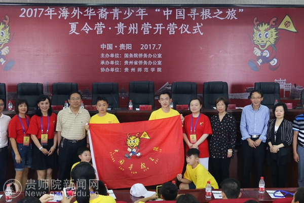最后,令狐荣锋、刘菡共同向营员授夏令营营旗,并与在场所有师生共同观赏了贵州旅游文化宣传片以及贵州师范学院宣传片,开营仪式圆满结束。
