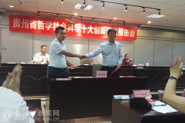 本网讯 7月12日下午,由贵州省社会科学界联合会举办的“贵州省哲学社会科学十大创新团队推进会”在黔云培训中心举行。各市州社科联负责人、各高校科研处处长和各学会、协会、研究会负责人以及省社科联全体机关干部共150余人参加会议。会议由省社科联党组书记、副主席包御琨同志主持。我校高研院中国山地民族研究创新团队成员杨定玉、黑洁锋应邀参加此次会议。