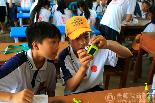“创客空间”,把课堂变成一个充满活力的创客工作坊,鼓励孩子们创建物品、发明工艺、分享创意点子。动手、动脑,用五官感受世界,开放和分享,大胆尝试,迭代设计,注重美学,打破年龄歧视,与贵州师范学院的大哥哥们一起玩游戏是最快乐的事。