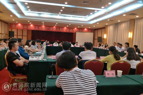 地师资培训班在贵阳开班。我校非物质文化遗产研究中心李楠楠、王文、鲍扬三位老师以及来自省内各市(州)文广新局、各培训基地代表等60余人共同参加了学习与交流。