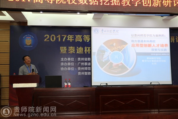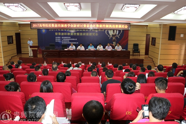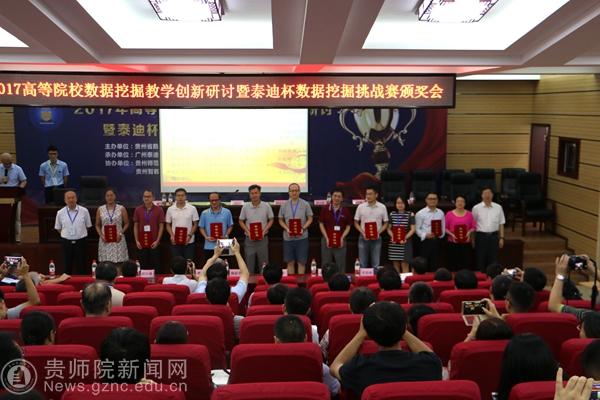 为推广高等院校数据挖掘应用创新,增强校企产学研交流合作和信息共享,提升高等院校的教学和科研创新能力,进行2017年数据挖掘挑战赛赛题评讲及优秀作品展示和大数据形势下高校大数据挖掘人才培养面临的挑战与对策的研讨。8月10日,由贵州省数学学会主办、广东泰迪智能科技有限公司、贵州师范学院承办的2017全国高等院校数据挖掘教学创新研讨会暨泰迪杯数据挖掘挑战赛颁奖大会在我校隆重召开,全国大学生数学建模竞赛组委会副主任陈叔平教授、秘书长谢金星教授、贵州省数学学会理事长向淑文教授、我校校长郁钟铭教授和来自清华大学、北京大学等全国各地高等院校200余位代表参加了会议。