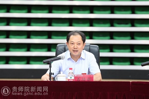 本网讯 8月18日下午,我校在体育馆隆重召开新学期全体教职工大会,安排部署新学期工作,全体在家校领导出席大会,副校长令狐荣锋主持大会。
