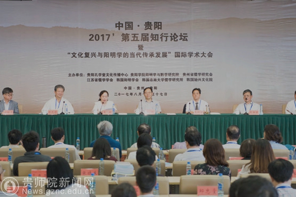 本网讯 近日,第五届知行论坛暨文化复兴与阳明学的当代传承发展国际学术大会在贵阳孔学堂隆重召开。大会由贵阳孔学堂文化传播中心、贵州省儒学研究会、贵阳学院阳明学与黔学研究院、江苏省儒学学会、韩国阳明学会、韩国忠南大学儒学研究所和韩国始兴文化院共同主办,旨在探讨文化复兴语境下的阳明学之当代传承与发展。来自中国大陆、台湾、香港、韩国、日本、越南、美国、德国等国家和地区的80所高校、研究机构和出版单位等150余名阳明学专家学者参加研讨大会,会议共收到会议论文120余篇。我校马列主义教学部教师、南京大学在读博士王天桥副教授受邀参加研讨会,并提交论文《王阳明义理诠释方式:以喻释义》。