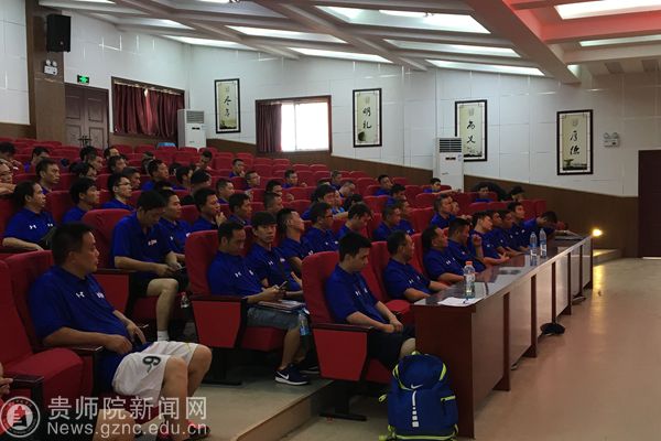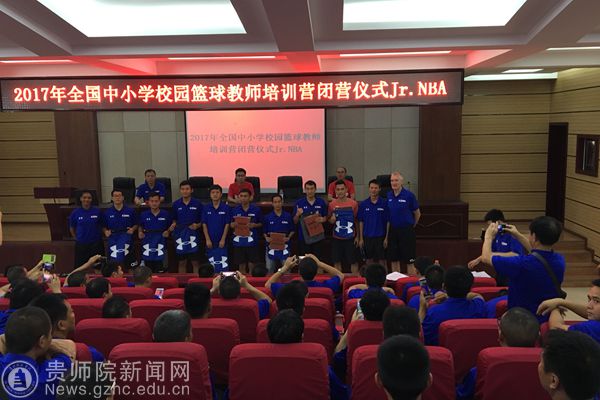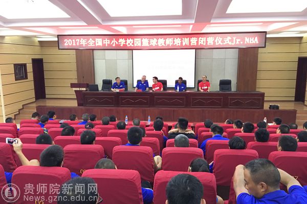 本网讯 8月25日上午,由教育部主办、全国校园篮球联盟承办,贵州师范学院执行的2017全国中小学校篮球教师培训营(贵州站)闭营仪式在贵州师范学院道德讲堂举行。贵州师范学院体育学院院长黄伟明,NBA中国教练组教练Tom Kelsey,NBA中国教练组助理教练Lebogang akanyang出席闭营仪式,闭营仪式由贵州师范学院体育学院院长黄伟明主持。