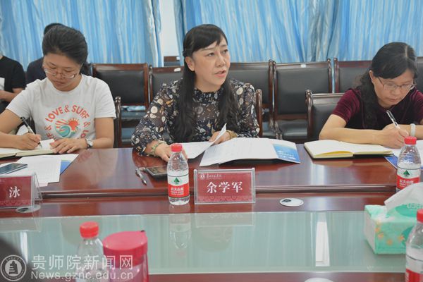本网讯 9月1日下午,贵州师范学院2017年“双一流”教师外语培训开班典礼在我校明义楼333会议室举行。副校长郭文;外国语学院院长余学军、副院长罗泳;培训班全体学员、授课教师及班主任;教师工作处全体成员参加了会议。会议由教师工作处副处长王茜主持。