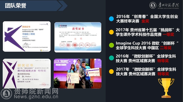 本网讯 近日,教育部第三届中国“互联网+”大学生创新创业大赛总决赛入围作品名单发布,全国共有119件作品入围总决赛。贵州省高校共1件作品入围(作品来源:贵州师范学院,作品名称:Museum+,项目负责人:韦南京,指导教师:杜宏博、刘世华、谭韬),获得现场争夺金奖的资格,实现了我校在该项赛事上零的突破。我校也成为近三年贵州省唯一在“互联网+”、“挑战杯”、“创青春”三大最高水平综合赛事当中连续入围全国总决赛的高校。