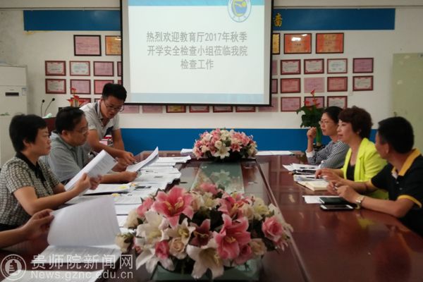 本网讯 9月11日下午,省教育厅安全生产大检查暨2017年秋季学期学校开学安全检查组莅临外国语学院检查安全工作开展情况。检查小组成员有铜仁学院副院长罗红芳、铜仁学院保卫处处长陈尽东、铜仁学院职院处长候松林、铜仁幼专科长杨秀军,贵州师范学院副校长令狐荣峰、保卫处处长蒋江南等一行陪同检查。