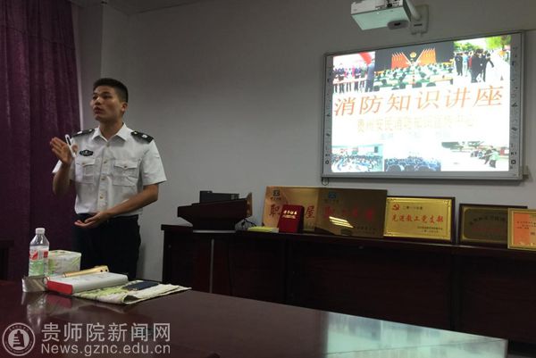 本网讯 由于图书馆属于一级防火单位,为了严防冬季因用电量大,或操作不当容易引发火灾的隐患,同时提高图书馆每个馆员的消防意识和应急技能,确保在突发火灾事故时,能够高效、有序地进行抢险、救援和疏散处理。9月20日上午,图书馆在会议室举办了消防安全知识培训大会,并特别邀请贵州省安民消防宣教中心的廖超教官进行消防安全知识讲座。