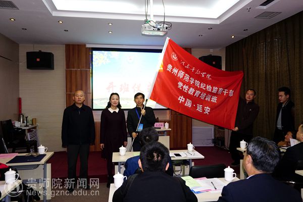 本网讯 10月23日上午,贵州师范学院纪检监察干部党性教育培训班在革命圣地延安大学泽东干部学院开班,延安大学泽东干部学院正处级调研员张高旗、贵州师范学院纪委书记王之瑞率全体学员参加开班仪式。