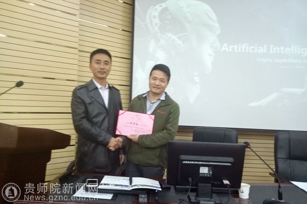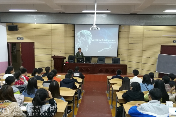 在学术报告部分,袁博士以“人工智能的起源、趋势、应用与挑战”为题,对人工智能的历史脉络进行介绍,对相关的经典论文之间的联系进行描述,并对人工智能的学术及应用趋势进行讲解,并探讨了人工智能相关技术的挑战。在宣讲会部分,袁博士介绍了深圳技术大学和深圳大学联合培养研究生招生的相关内容,表示欢迎师范学院的同学报考。
