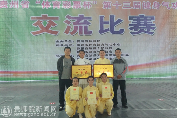 此项赛事是由贵州省体育局主办,省体育健身气功中心、务川自治县人民政府、省健身气功协会具体承办。来自全省各市、州体育(文体广电)局,省健身气功之乡,省太极·健身气功示范区,省健身气功示范镇,中航工业黎阳公司,省“健身气功管理方式改革”试点单位等30余支代表队参加了比赛。经过激烈角逐,我校学生参赛的项目分别荣获健身气功·易筋经集体项目一等奖、健身气功·八段锦集体项目一等奖,健身气功·六字诀个人项目一、二等奖及健身气功·五禽戏个人项目三等奖的好成绩。