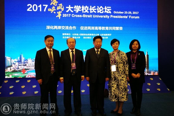 本网讯 10月25至27日,由青岛大学校主办、台湾昆山科技大学协办的“2017海峡两岸大学校长论坛”在黄海饭店举行。山东大学、中国海洋大学、中国石油大学(华东)、山东科技大学、济南大学、山东理工大学、鲁东大学、烟台大学、贵州师范学院、台湾中国文化大学、台湾海洋大学、台湾艺术大学、大同大学、高雄大学、修平科技大学、昆山科技大学等来自海峡两岸的近50所大学的100余名校长、两岸事务部门负责人和专家学者参加了本次论坛。我校校长郁钟铭应邀参会,党政办主任芦军、对外交流合作处处长张瑶随同参会。