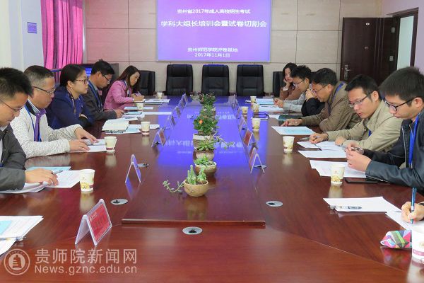 本网讯 11月1日下午,我省2017年成人高校招生考试评卷学科大组长培训暨试卷切割会在我校评卷基地会议室召开。省招生考试院成招处副处长郝幸,校评卷基地办公室主任、继续教育学院院长赵德肃,副院长王先华出席会议,各学科大组长、学科组长,深圳市海云天科技股份有限公司项目负责人等参加了会议。会议由赵德肃主持。