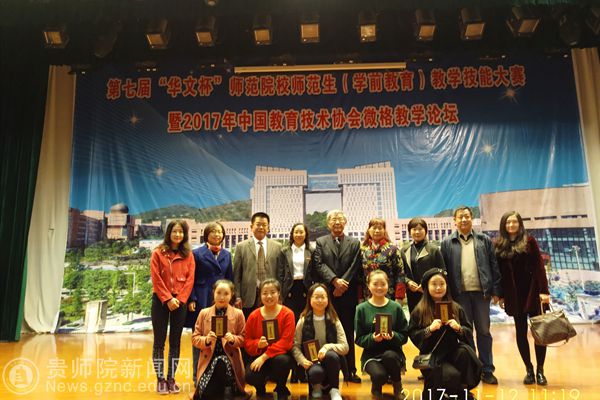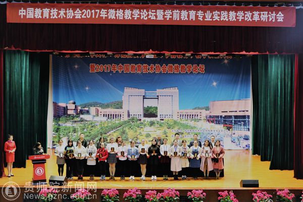 会议伊始,两名获奖的优秀选手分别进行了教学技能的现场展示,内容生动、形式新颖、教学方法多样,博得现场观众阵阵掌声;接着,贵州师范大学教育科学学院学前教育系主任李旭博士对比赛情况进行了点评;随后,贵州师范学院教育科学学院大拇指儿童剧团带来了自编、自导、自演的儿童剧《月亮的味道》,充分展现了我校学前教育学子的风采;紧接着,中国教育技术协会微格教学专委会秘书长杨华教授对本次比赛进行总结,他充分肯定了此次比赛的成绩,对参赛学员的完美表现、领队教师的辛勤指导、大赛承办方工作人员的热情付出和周到服务表示由衷的感谢,并对学前教育的改革和发展提出了新的希望;最后,中国教育技术协会微格教学专委会副理事长、本次大赛评委会副主任杜复平教授宣读了在教学设计、教学技能中获奖的人员名单,并与参会嘉宾为获奖选手颁发了证书。