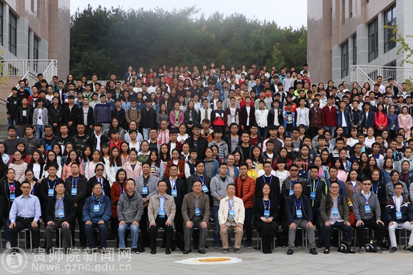 本网讯 11月10上午9时,贵州省教育大数据技术与教育数学院士工作站(以下称院士工作站)2017年院士大讲堂暨教育大数据技术与教育数学研讨会在逸夫楼演播厅开讲,出席活动开幕式的领导及嘉宾有:中国科学院院士张景中,我校副校长令狐荣锋,贵州省教育科学院教研员朱龙,我校科研处处长金凤,我校教务处处长熊世恒,院士工作站负责人、我校数计学院院长左羽,张景中院士专家团队,教育数学院士实验学校领导及老师代表,我校院士工作站研究团队全体成员,成都景中教育软件有限公司负责人及我校数计学院师生代表,共计400余人参加会议。会议由左羽主持。