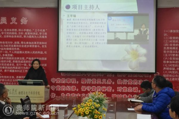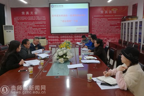 本网讯 12月6日下午,在物电学院会议室召开贵州省本科高校一流课程建设项目“理论物理”开题报告会。会议邀请了贵州大学隆正文教授、贵州师范大学宋晓书教授、贵州师范学院令狐荣锋教授和教务处熊世桓教授作为专家组成员,参会的还有教学质量管理科科谭义群老师,项目组成员陈德良、刘高福、李振宇、闻水国、吴永刚等。会议由项目负责人王平瑞教授主持。