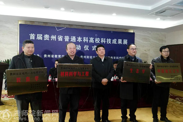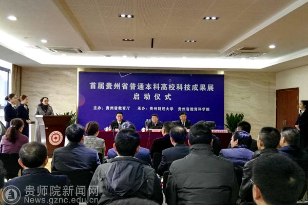 本网讯 12月19日上午,由贵州省教育厅主办,贵州财经大学、贵州省教育科学院承办的首届贵州省普通本科高校科技成果展启动仪式在贵州财经大学图书馆9楼举行。来自全省普通本科高校的分管科研的校领导、科研处负责人、省级重点学科负责人、贵州省2011协同创新中心负责人、国家级重点实验室(工程研究中心)负责人等参加了启动仪式并参观了展览。启动仪式由省教育厅科研处处长熊星主持。启动仪式上,贵州财经大学党委书记褚光荣致辞,省人民政府学位办秘书长代其平讲话,并对贵州省立项建设的一流学科进行了授牌。
