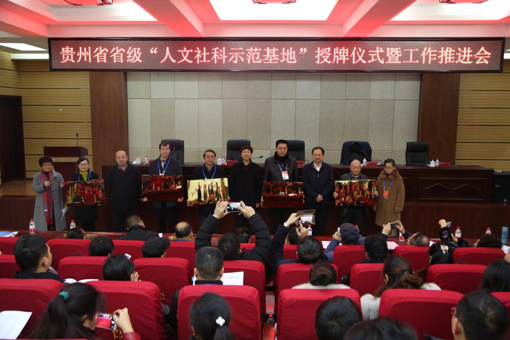 随后,刘宗严宣读了获得2017和2018年省级“人文社科示范基地”单位名单与《关于成立“贵州省‘人文社科示范基地’监督工作委员会的通知》,并为示范单位进行了授牌。六盘水师范学院副校长彭望书、毕节市大方奢香博物馆馆长吴太年、贵州师范学院文学院党委书记韦丹依次作了省级“人文社科示范基地”申创工作经验交流。