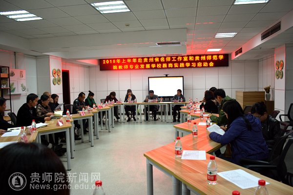 我校2018年上半年度赴省名师工作室和教师专业发展学校跟岗实践学习启动会于3月28日下午在信息楼1210会议室召开,贵州省省名师工作室主持人、教师专业发展学校校长代表;各学院分管教师队伍建设的院领导;跟岗实践教师以及教师工作处全体成员参加了会议。会议由教师工作处副处长王茜主持。
