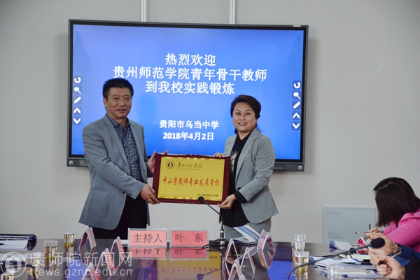 接着,谢笠向乌当中学授牌为“贵州师范学院教师专业发展学校”。