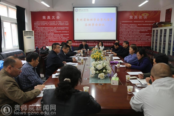 本网讯 4月1日上午,贵州省物理学会第九届常务理事会于贵州师范学院物理与电子科学学院会议室顺利召开。由常务理事长令狐荣锋,名誉常务理事长蔡绍洪及贵州省各高校物理学会常务理事参会;会议由常务副理事长周筑文主持。