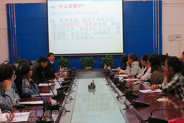 本网讯 4月16日上午,应我校科研处、马列主义教学部、经济与政治学院邀请,南京大学哲学系教授、博士研究生导师、学术委员会委员,江苏省儒学学会常务副会长,江苏省高校哲学社会科学创新团队“儒佛道治理思想研究团队”首席带头人李承贵教授莅临我校讲学。在我校第一会议室,李承贵教授以“儒学:提升生活的智慧”为题为我校师生作了丰富精彩的学术讲座。讲座由科研处处长金凤教授主持,马列主义教学部、经济与政治学院等人文社科学院部分师生参加了此次讲座。